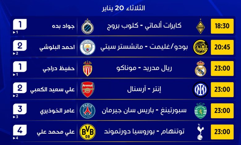 الرئيسية/جدول المباريات/دوري أبطال أوروبا – اليوم الثلاثاء جدول المباريات دوري أبطال أوروبا – اليوم الثلاثاء 20 يناير، 2026 50 فيسبوك تويتر لينكدإن واتساب 20 يناير، 2026 50 فيسبوك تويتر لينكدإن واتساب شاركها فيسبوك تويتر لينكدإن واتساب تيلقرام مشاركة عبر البريد طباعة