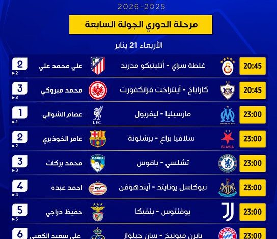 الرئيسية/جدول المباريات/مباريات دوري أبطال أمم أوروبا – الأربعاء جدول المباريات مباريات دوري أبطال أمم أوروبا – الأربعاء 21 يناير، 2026 161 فيسبوك تويتر لينكدإن واتساب 21 يناير، 2026 161 فيسبوك تويتر لينكدإن واتساب شاركها فيسبوك تويتر لينكدإن واتساب تيلقرام مشاركة عبر البريد طباعة