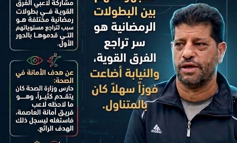 وأوضح أن مشاركة النجوم في عدة بطولات رمضانية في آنٍ واحد أدت إلى إنهاكهم بدنياً وذهنياً، مما أفقد الفرق توازنها الفني في المباريات الفاصلة التي لا تقبل القسمة على اثنين.